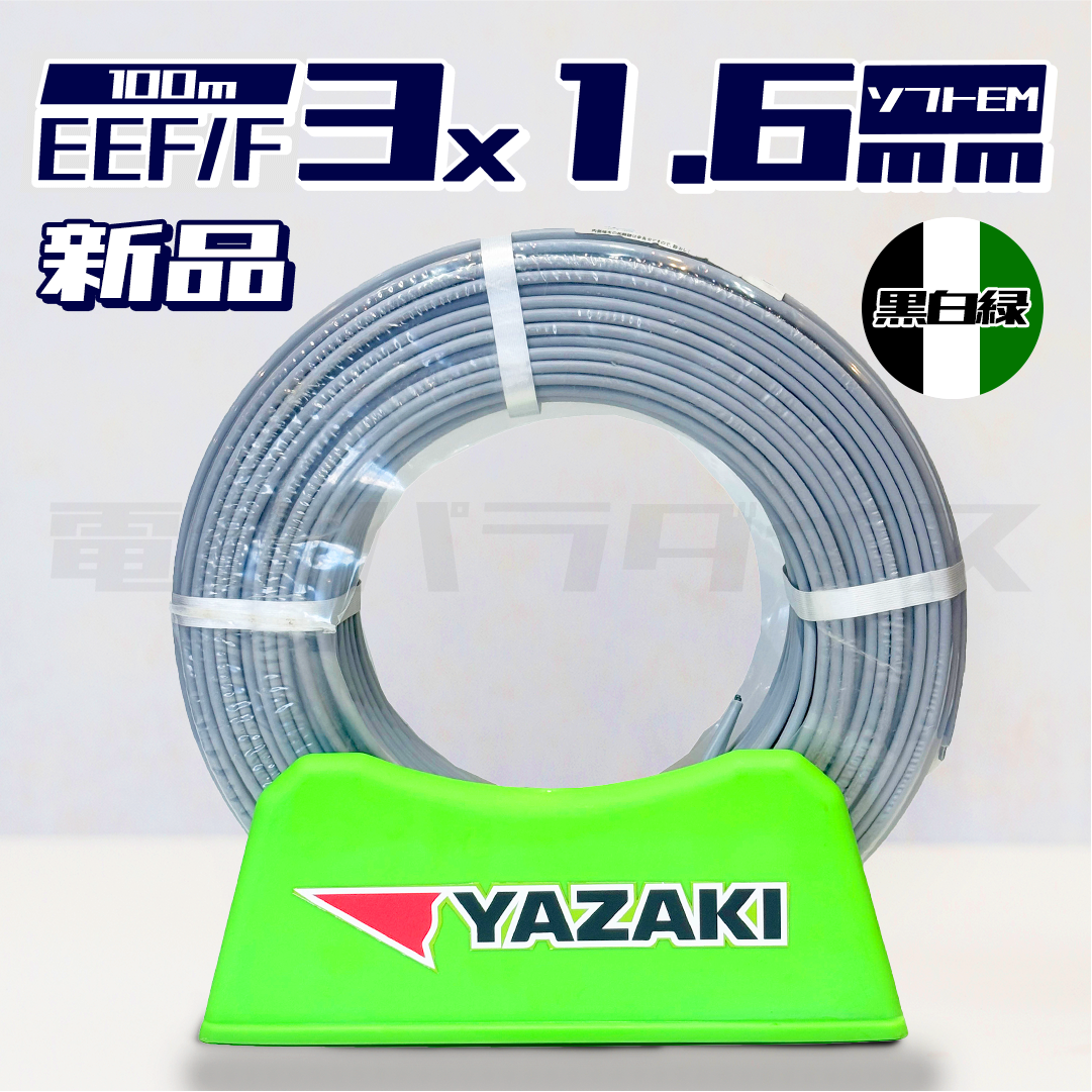 矢崎電線 EEF/F 1.6mm×3芯 ソフトEM 黒白緑 100m巻 (600V灰色)|電線パラダイスは即日発送